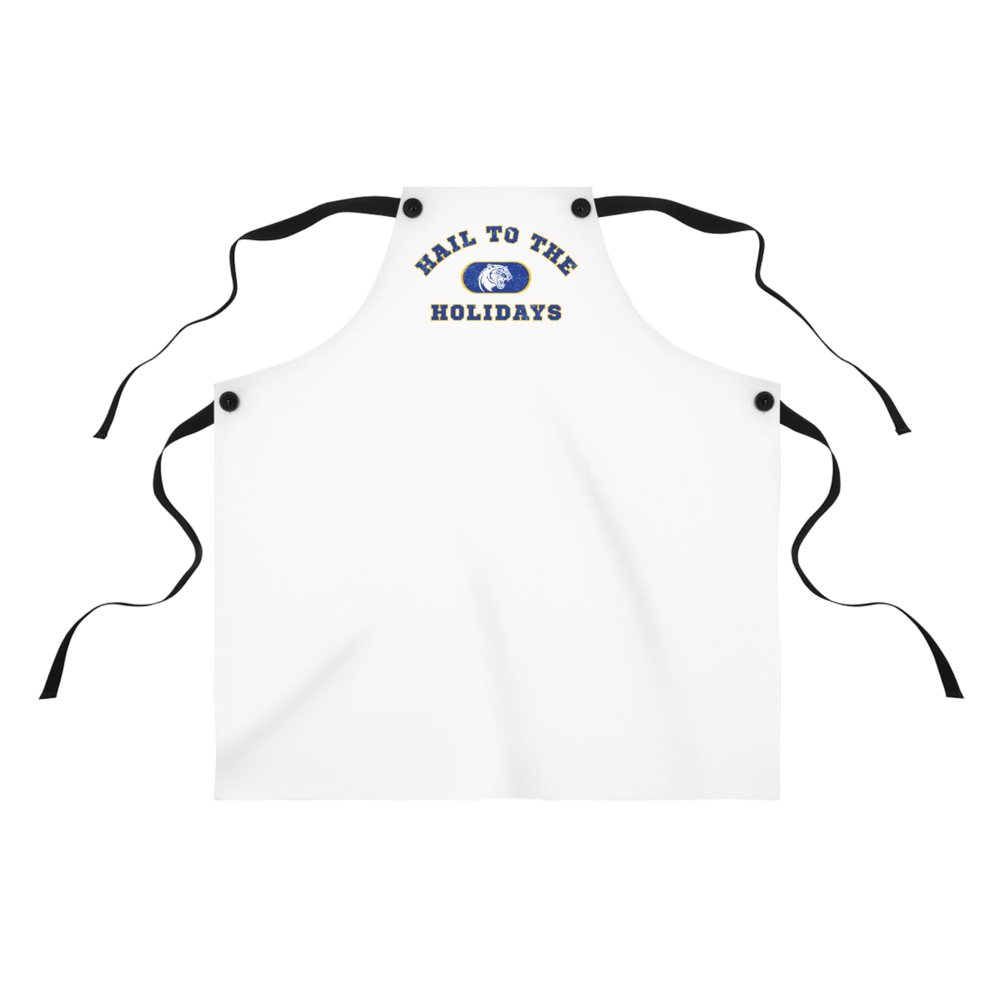 Hail to the Holidays Pitt Fan Apron – Festive Blue & Gold Holiday Cooking Gear