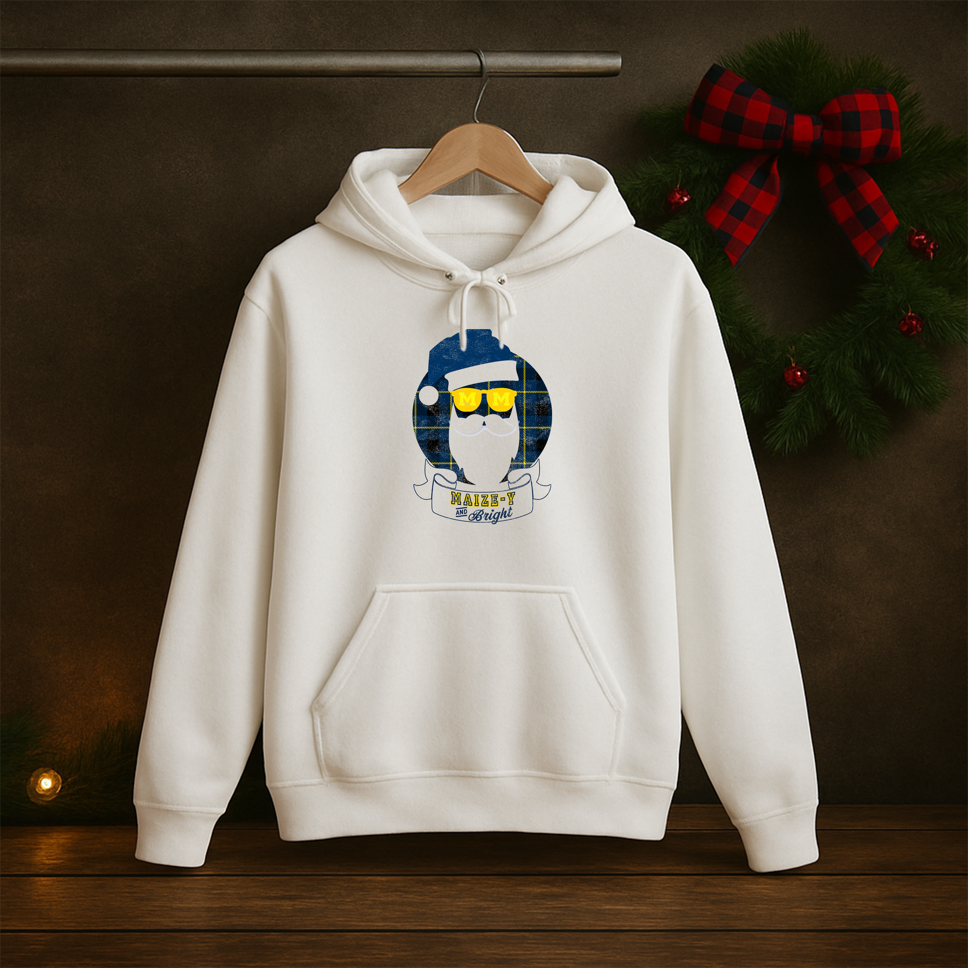 This isn’t your average Christmas hoodie — this is holiday spirit with a Big House attitude. Our “Maize-y & Bright” design brings a gritty Sideline twist to the season, featuring a retro Santa silhouette decked out in blue-and-maize plaid, mirrored shades, and that unmistakable Wolverine swagger. It’s festive, loud, and unapologetically Michigan.